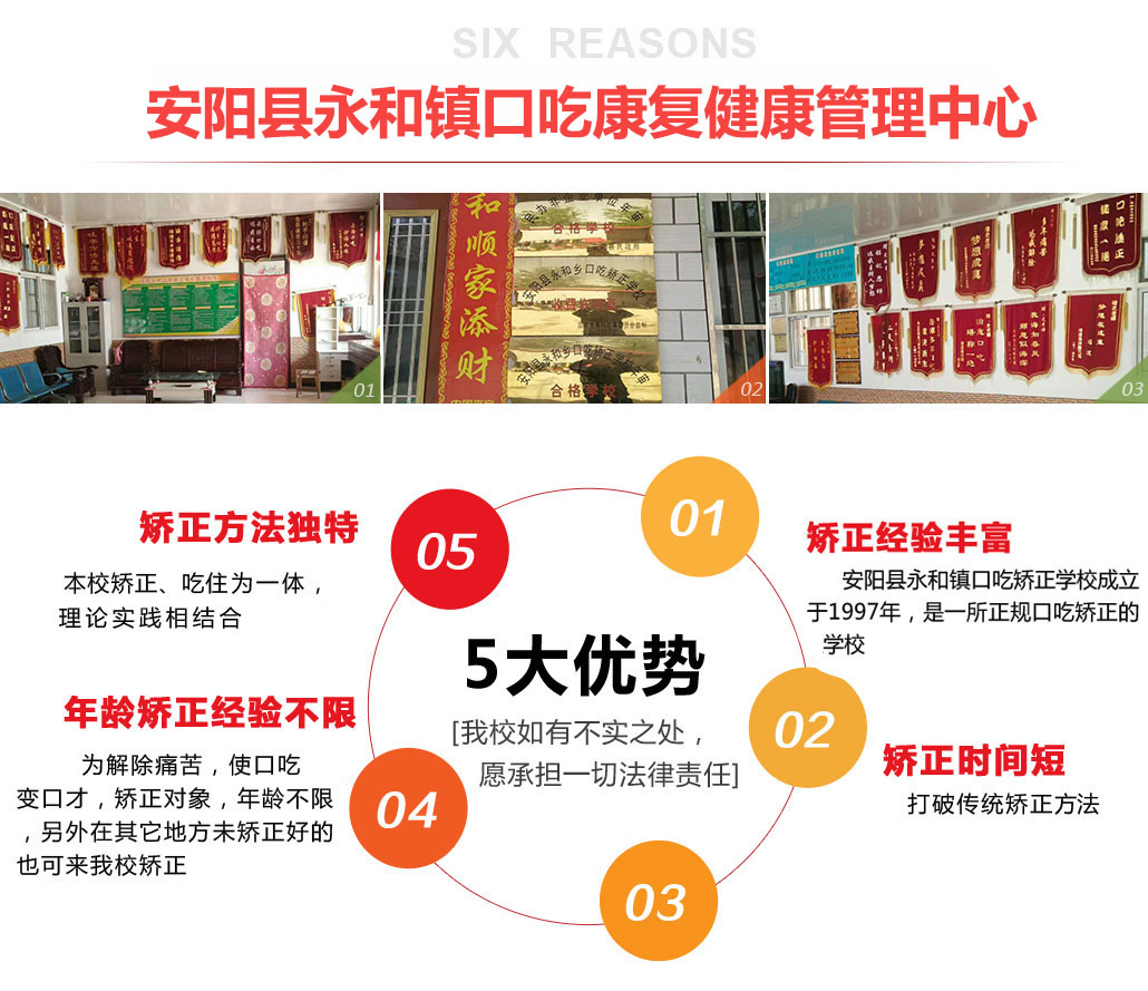 如果你是位口吃朋友.....如果你因此而痛苦、忧郁.....你可以花几年、十年、几十年、甚至一辈子时间慢慢摸索自我矫正,你也可以学习成功的矫正经验。把口吃转化为口才,提升自己的人生价值!安阳县永和镇口吃矫正学校,用学员口碑,树立行业.......这里将是你人生的转折点!